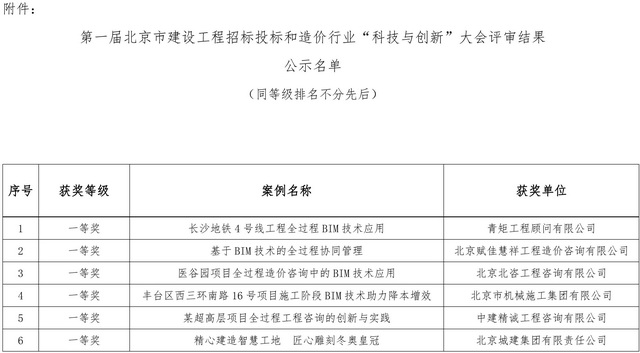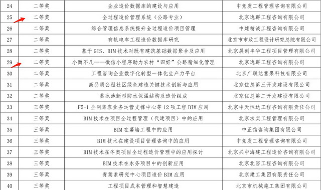 2021年10月15日,北京市建設(shè)工程招標(biāo)投標(biāo)和造價(jià)管理協(xié)會(huì)發(fā)布了“第一屆北京市建設(shè)工程招標(biāo)投標(biāo)和造價(jià)行業(yè)‘科技與創(chuàng)新’大會(huì)案例評(píng)審結(jié)果公示”,公司選送的《全過程造價(jià)管理系統(tǒng)(公路專業(yè))》、《小而不凡-微信小程序助力農(nóng)村“四好”公路精細(xì)化管理》均榮獲優(yōu)秀成果案例二等獎(jiǎng)。