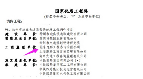 公司監(jiān)理的徐州市迎賓大道高架快速路工程 PPP 項目榮獲“國家優(yōu)質(zhì)工程獎”,是公司第五次獲得此獎!