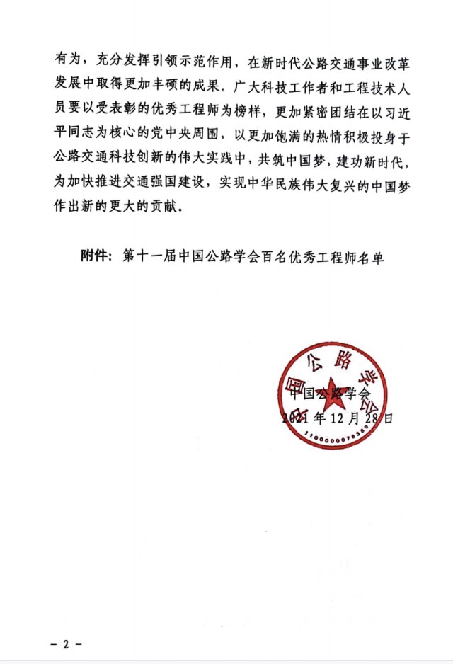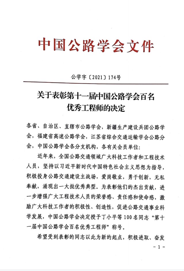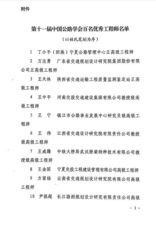 日前,中國(guó)公路學(xué)會(huì)組織評(píng)選的“第十一屆中國(guó)公路學(xué)會(huì)百名優(yōu)秀工程師”結(jié)果揭曉,公司張海斌同志榮登此榜。 中國(guó)公路學(xué)會(huì)對(duì)愛崗敬業(yè)、勇于創(chuàng)新、無(wú)私奉獻(xiàn)的公路交通科技工作者和工程技術(shù)人員進(jìn)行反復(fù)甄選評(píng)比,最終評(píng)選出公路交通建設(shè)領(lǐng)域內(nèi)百名優(yōu)秀工程師。