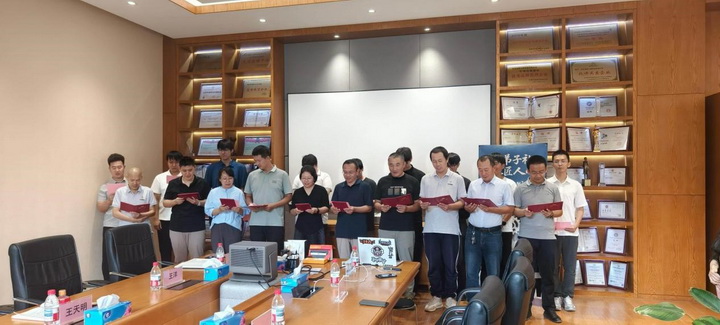 隨后,進入頒發(fā)聘書與宣讀承諾環(huán)節(jié)。在悠揚的背景音樂中,公司領導分別為十位專業(yè)導師與四位職業(yè)導師頒發(fā)了聘書。師徒雙方并肩而立,莊嚴宣讀承諾書,表達了恪盡職守、攜手共進的決心。聘書雖輕,責任卻重,每一份承諾都承載著沉甸甸的信任與期待。